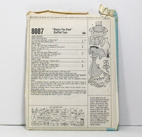 Winnie The Pooh Bear Mccalls Sewing Pattern 8087 Tigger Piglet Eeyore Kanga Vintage Sewing Patterns Shop